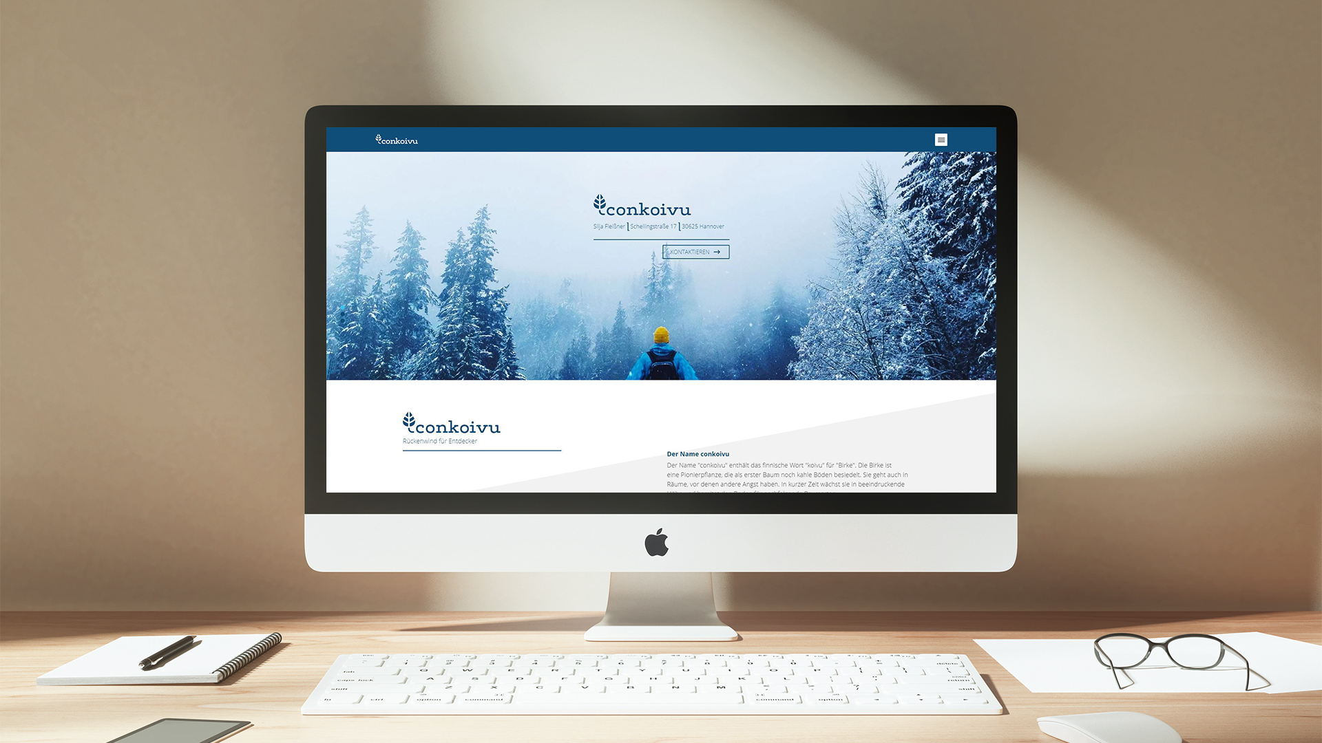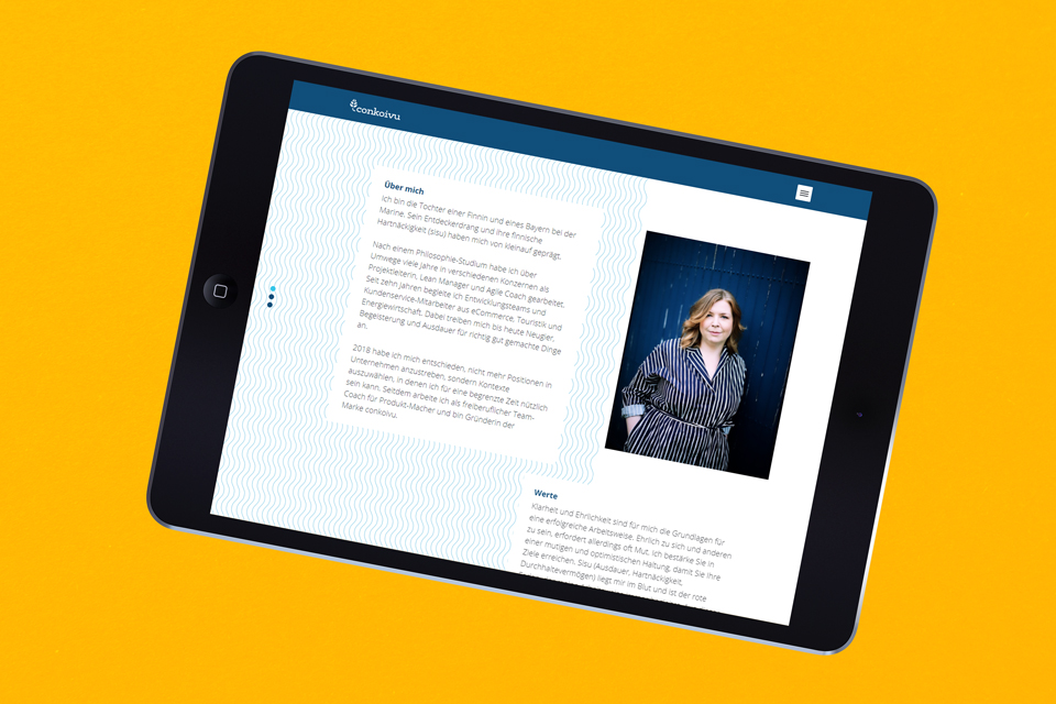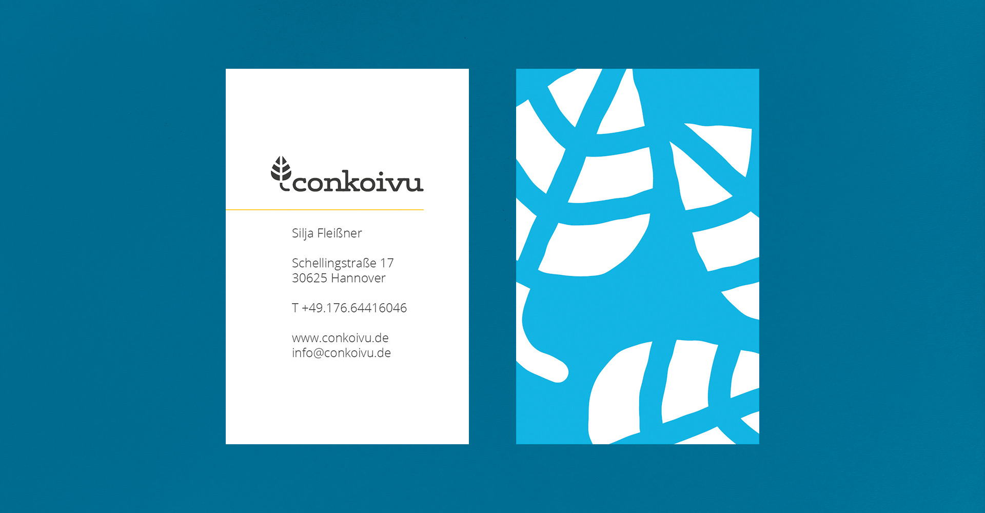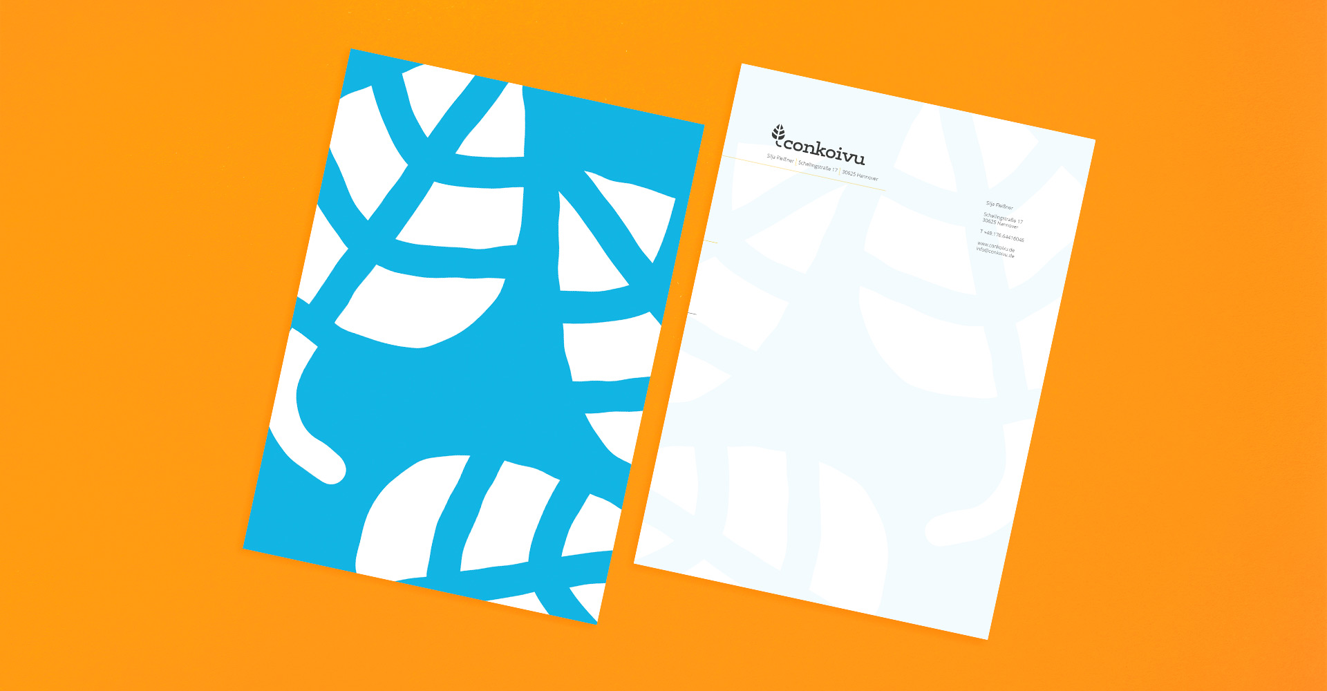 Für Conkoivu haben wir eine Bildmarke kreiert, die auf die starke Willenskraft und Vitalität der Birke anspielt. Die Typographie und die mutige Bildsprache führen zu einem stimmigen Erscheinungsbild. Kraftvolle komplementäre Farben prägen das lebendige Gesamtbild. Das neue Design wurde in einem kleinen Manual dokumentiert und auch direkt in der neuen Geschäftsausstattung angewendet. Ein hochwertiges Naturpapier und ein Sandwich-Effekt bei den Visitenkarten setzen besondere Akzente und strahlen gleichzeitig professionelles Understatement aus.