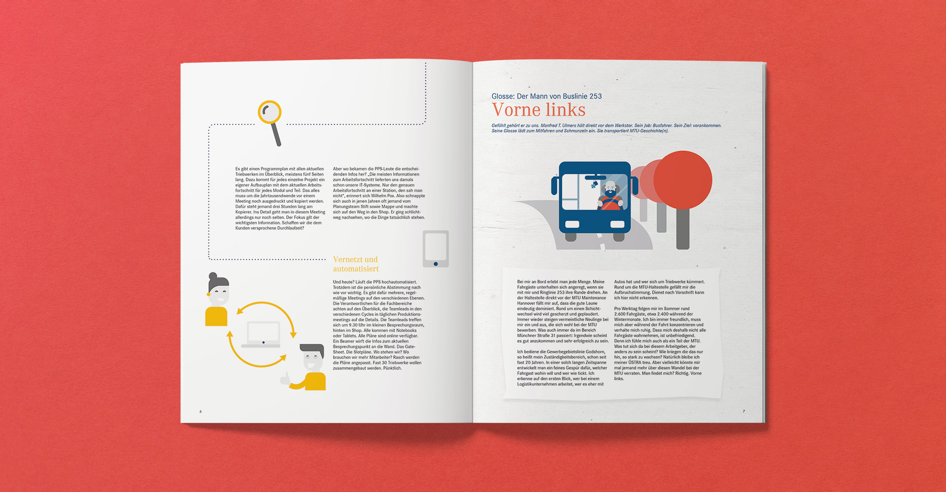Dabei besticht das Heft durch das Zusammenspiel aus unternehmensinternen Inhalten, Wissenwertem aus der Historie des Standortes Hannover und unterhaltsamen Anekdoten. Grafisch lebt das Magazin von einem frischen Layout mit Weißräumen und zahlreichen individuellen Illustrationen, die das Design ergänzen und auflockern.