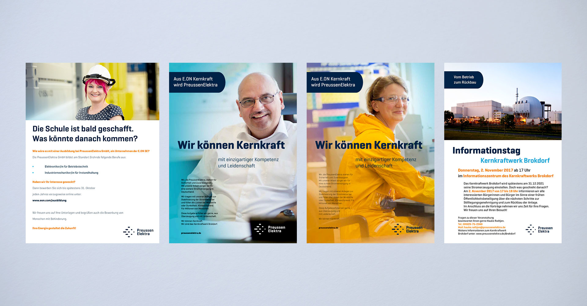klartxt betreute zunächst den kompletten Markenrelaunch von PreussenElektra und entwickelte eine Positionierung sowie Kernbotschaften für die Kommunikation nach innen und außen. Zur Bekanntmachung wurde eine umfangreiche Mediakampagne geschaltet und für die Mitarbeiter:innen wurde ein Welcome-Package konzipiert. Darüber hinaus war klartxt für ein umfassendes Rebranding aller acht Standorte verantwortlich und betreut bis heute diverse Kommunikationsmaßnahmen rund um die Themen Leistungsbetrieb, Rückbau und Mitarbeitergewinnung.