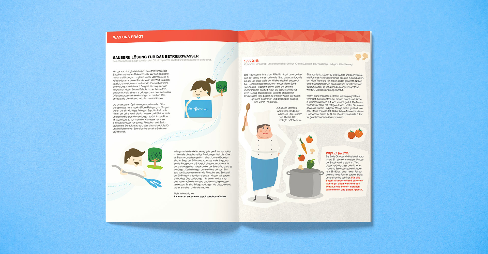 klartxt hat den Entstehungsprozess der Unternehmenszeitung SappiTalk von Anfang an begleitet. Von der grafischen und redaktionellen Konzeption bis zur Auswahl des geeigneten Materials für das Druckprodukt waren wir für alle Schritte verantwortlich.